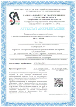 Центральная лаборатория аккредитована на соответствие требованиям ГОСТ ISO/IEC 17025-2019, имеет разрешение на осуществление работ с условно-патогенными микроорганизмами и патогенными биологическими агентами первой группы риска.