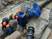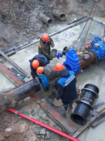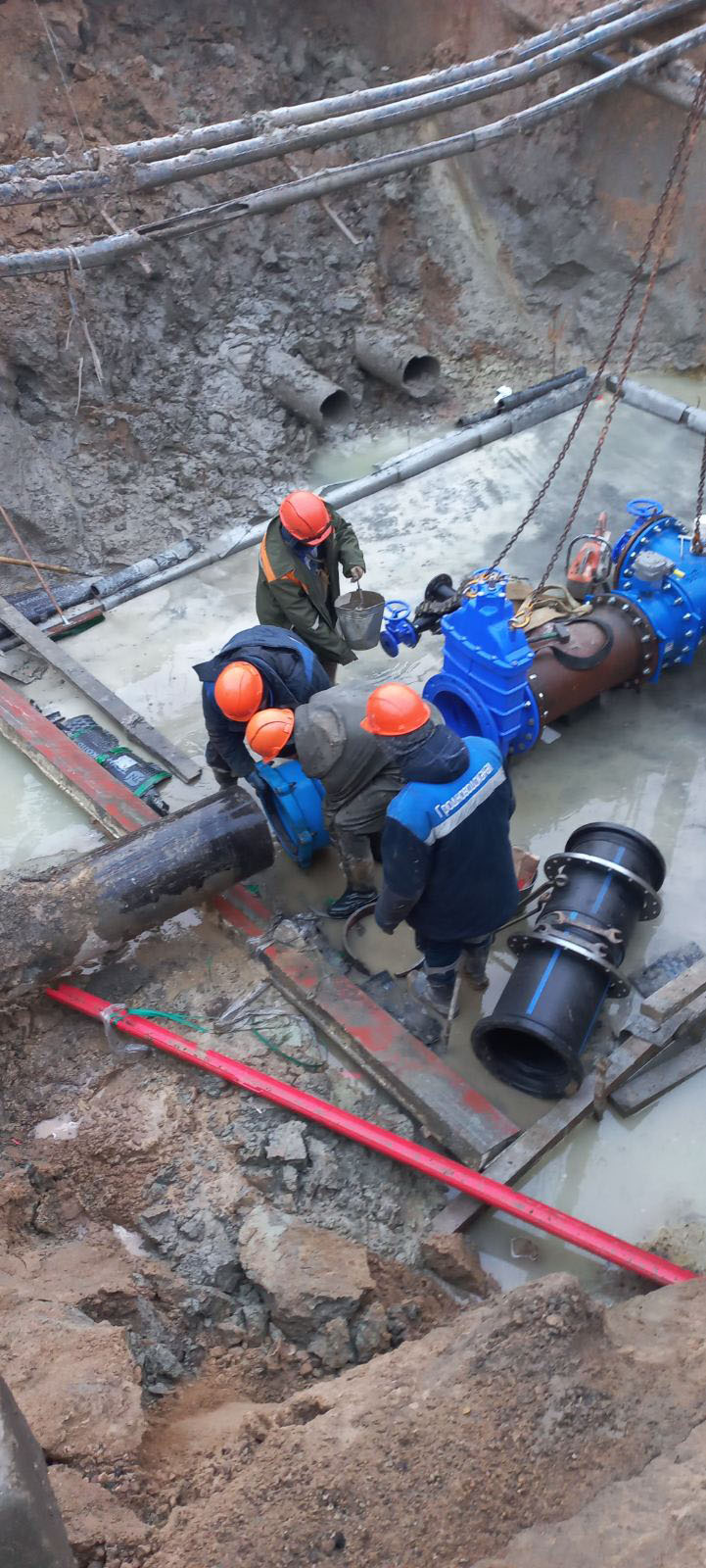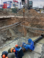 Участком водопроводной сети предприятия высокопрофессионально выполнены работы по запитке строящегося торгового объекта на пересечении улиц Дзержинского – Белые Росы с установкой современной запорной арматуры.