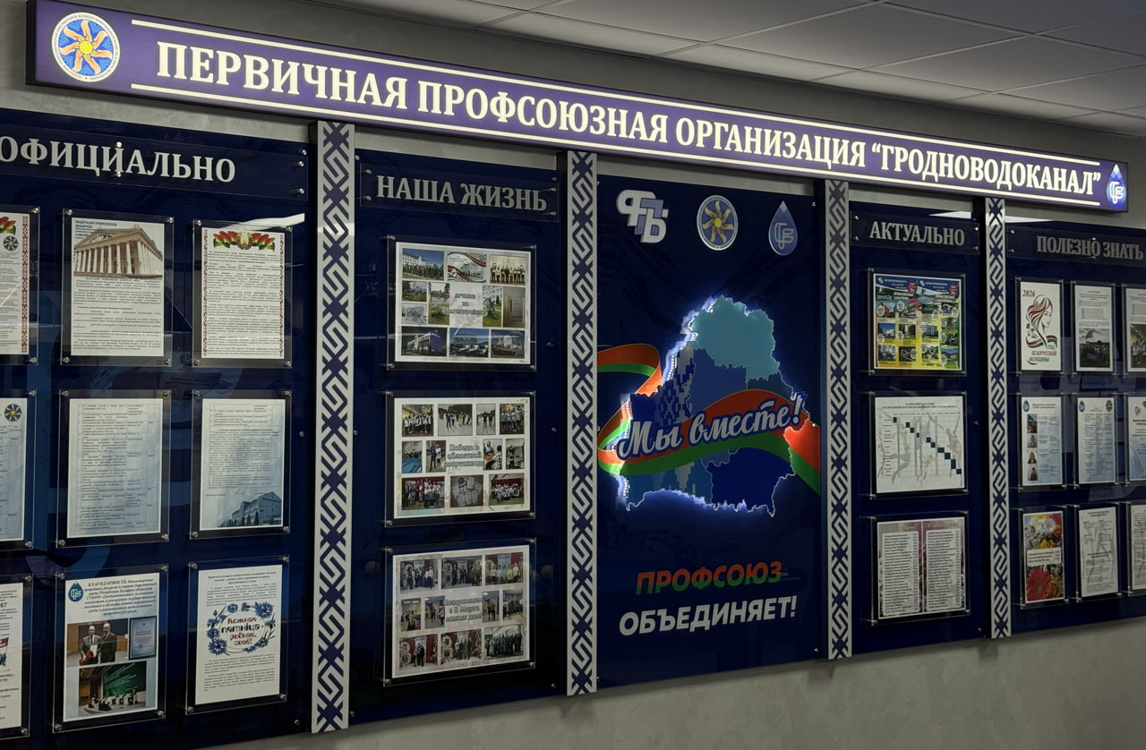 В преддверии Дня работников жилищно-коммунального хозяйства в ГУКПП «Гродноводоканал» продолжается череда приятных событий и полезных нововведений. Очередным подарком для коллектива стало торжественное открытие обновленного профсоюзного стенда, который теперь представляет собой не просто источник информации, а полноценный многофункциональный центр притяжения для всех сотрудников.