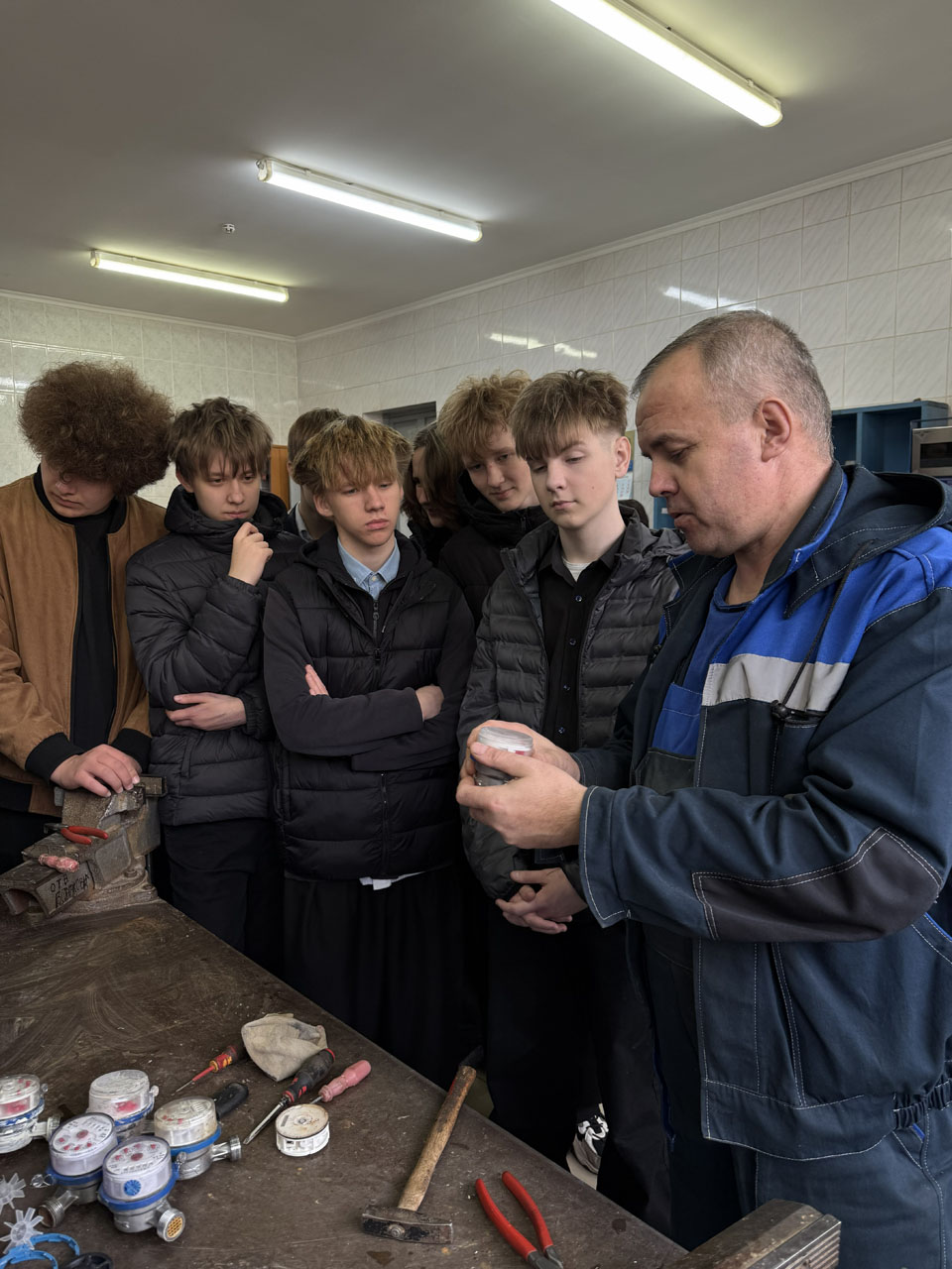 И все же самое интересное происходит в мастерских и на учебных полигонах. В водомерной мастерской мастер участка устроил для школьников настоящий «ликбез» по приборам учета. Ребятам объяснили, что такое поверка и калибровка счетчиков. Оказывается, за привычными цифрами в квитанциях стоит кропотливый труд профессионалов, от точности работы которых зависит финансовый комфорт горожан.