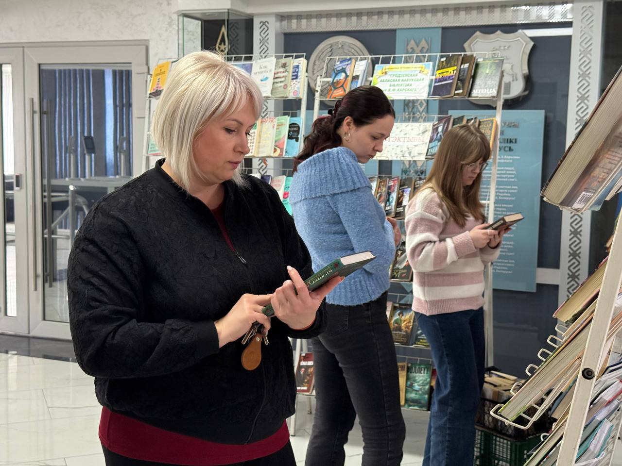 В минувший четверг сотрудники областной библиотеки имени Е.Ф.Карского развернули мобильный читальный зал прямо в фойе административного здания. На стеллажах разместились тома на любой, даже самый взыскательный вкус: от душевных женских историй и интригующих детективных сюжетов до мотивационной литературы и проверенной времени классики. В ассортименте есть книги для детей. Библиотека посещает предприятие на регулярной основе. Сотрудники признаются: такой формат экономит личное время и делает культурный досуг доступным для каждого. Еще один приятный бонус – система предзаказа. Можно рассказать библиотекарю о своих предпочтениях и нужную книгу привезут в следующий раз.
