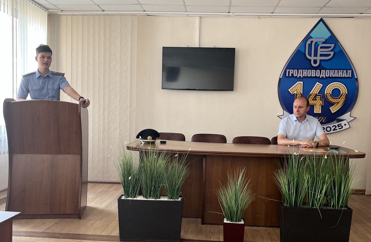 Фишинг, вишинг, брутфорс и другие виды киберпреступлений, завуалированные замысловатыми терминами, обсудили на встрече сотрудников ГУКПП «Гродноводоканал» с оперуполномоченным по противодействию киберпреступности Ленинского РОВД г. Гродно Василевичем Матвеем.