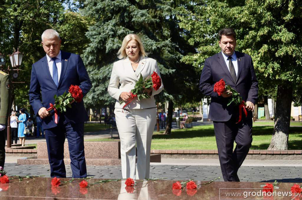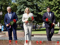 В Гродно общественно-политическая акция «Беларусь адзіная» стартовала с возложения цветов к братской могиле в парке Жилибера.