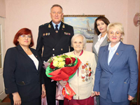 Бывшая малолетняя узница концлагеря Лидия Филкова принимала поздравления с 90-летием.