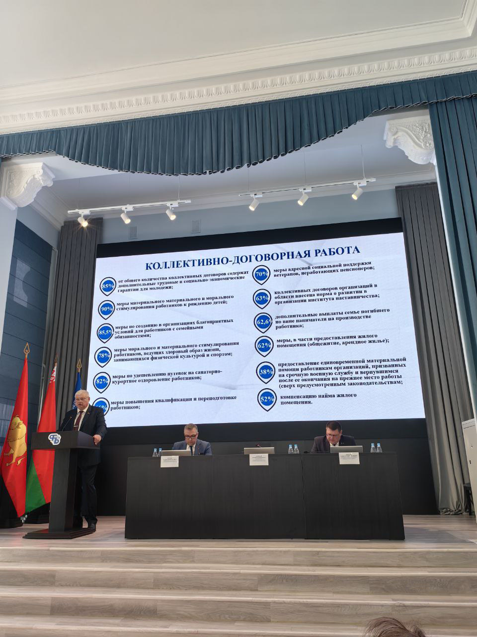 Председатель Гродненского областного объединения профсоюзов Юрий Алексей в своём докладе поделился итогами работы в 2025 году и обозначил задачи на 2026 год. Председатель первичной профсоюзной организации "Гродноводоканал" Ольга Урбанович в своём выступлении поделилась практикой совместной работы нанимателя и профсоюза. Коллеги из отраслевых профсоюзов делились опытом работы в области работы с молодежью, создания «первичек» и туристической деятельности.