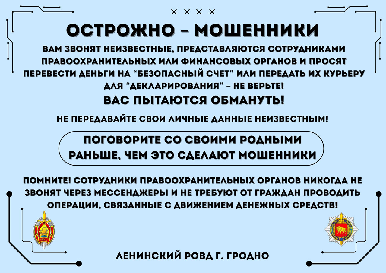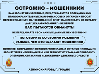 На территории Ленинского района г.Гродно продолжают иметь место факты преступлений, совершенных с использованием информационно-коммуникационных технологий, в отношении престарелых граждан.