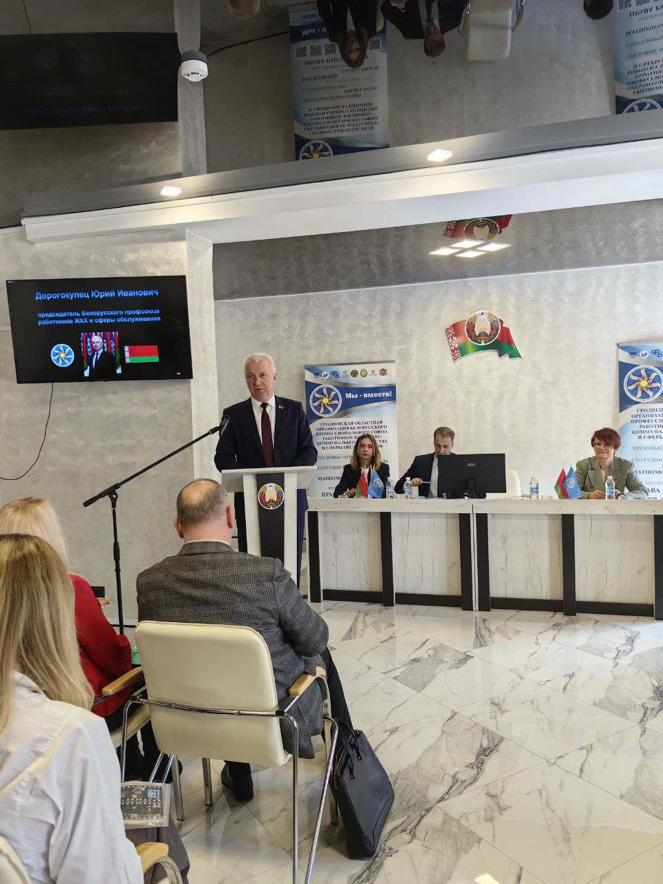 В мероприятии приняли участие Юрий Дорогокупец, председатель Белорусского профсоюза работников ЖКХ и сферы обслуживания,