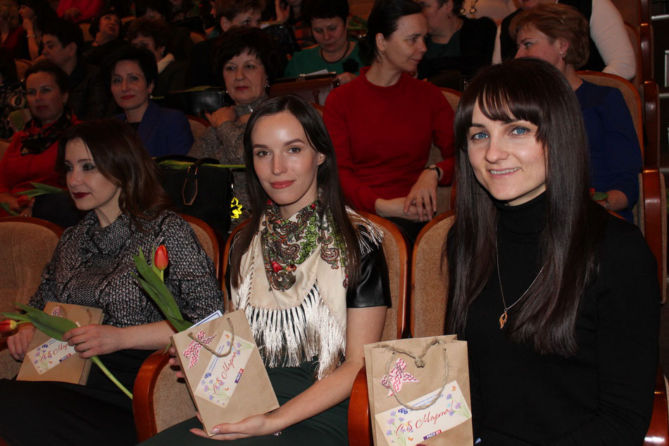 Всех женщин поздравили руководители профсоюзов города и области, а со своими музыкальными подарками выступили финалисты конкурсов «Новые имена Беларуси» и «Новые имена Беларуси. Детский этап».