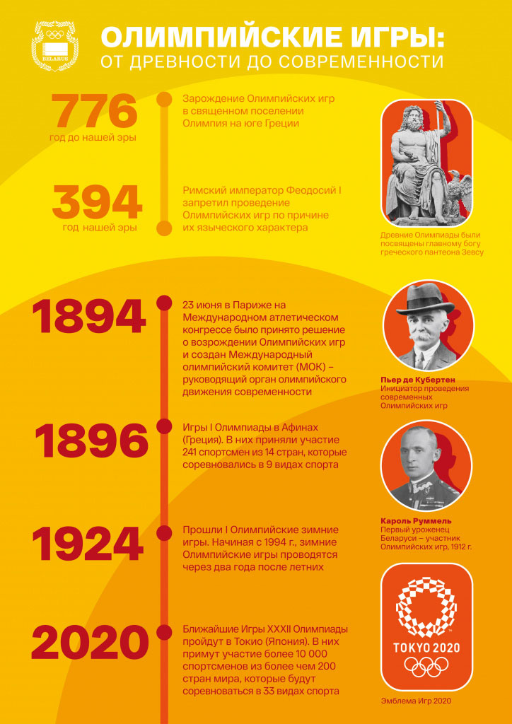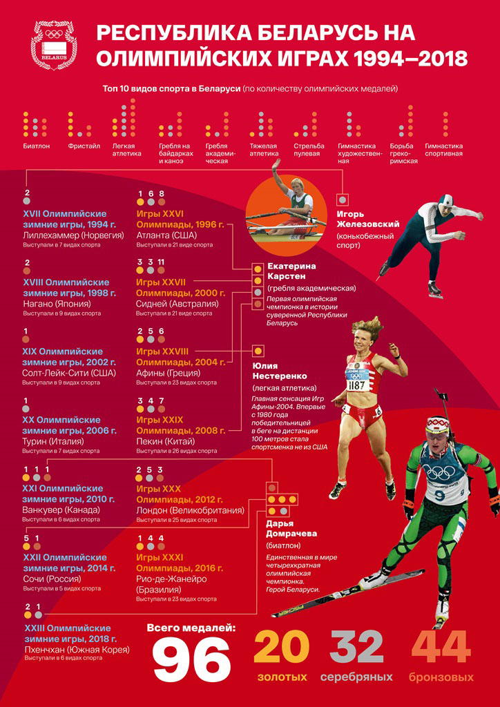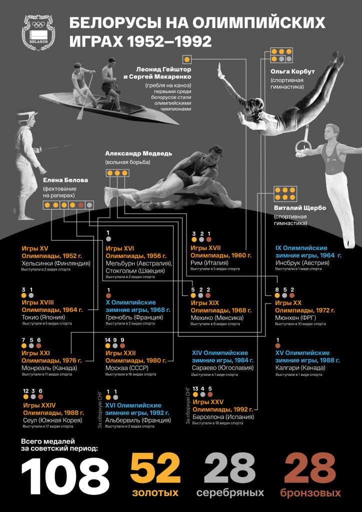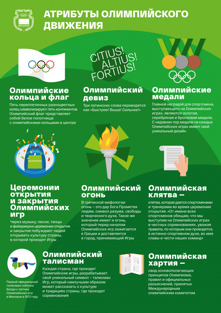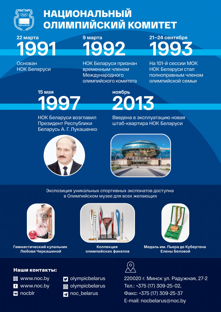 Национальный олимпийский комитет Республики Беларусь разработал информационную графику об олимпийском движении и месте в нем белорусов. Графика выполнена на пяти цветных листах, отсылающих к олимпийским кольцам, как самому узнаваемому символу Игр. На информационных листах представлены основы олимпийского движения и выступление белорусских спортсменов на Играх разных лет в советский и суверенный период.