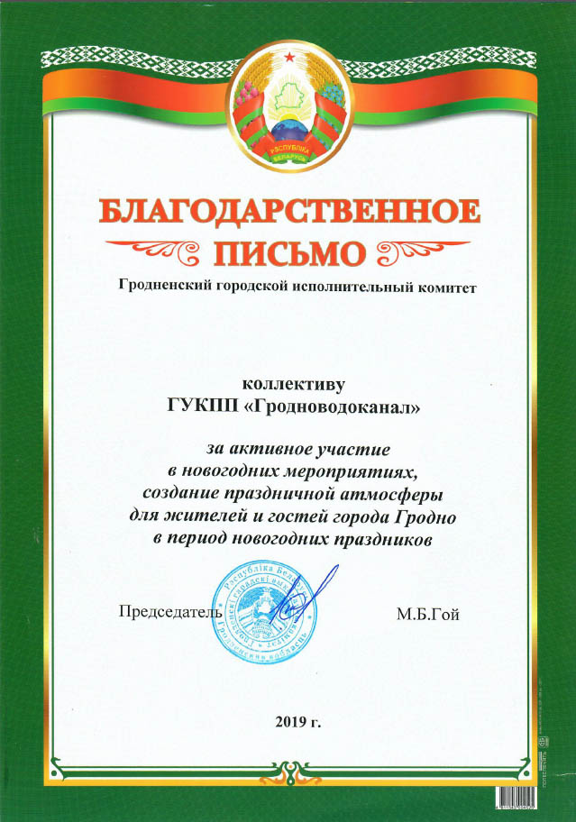 На планёрке председателя Гродненского горисполкома лучшие предприятия Гродно наградили за лучшие украшения к Новому году. В их числе был и ГУКПП «Гродноводкоанал».