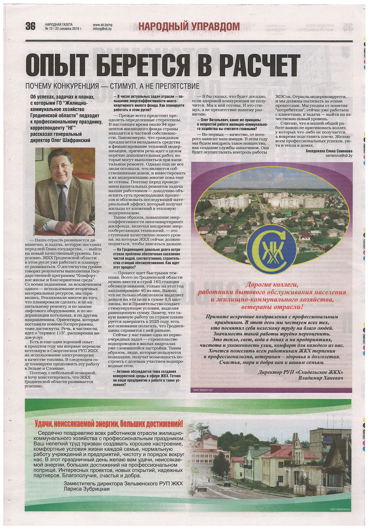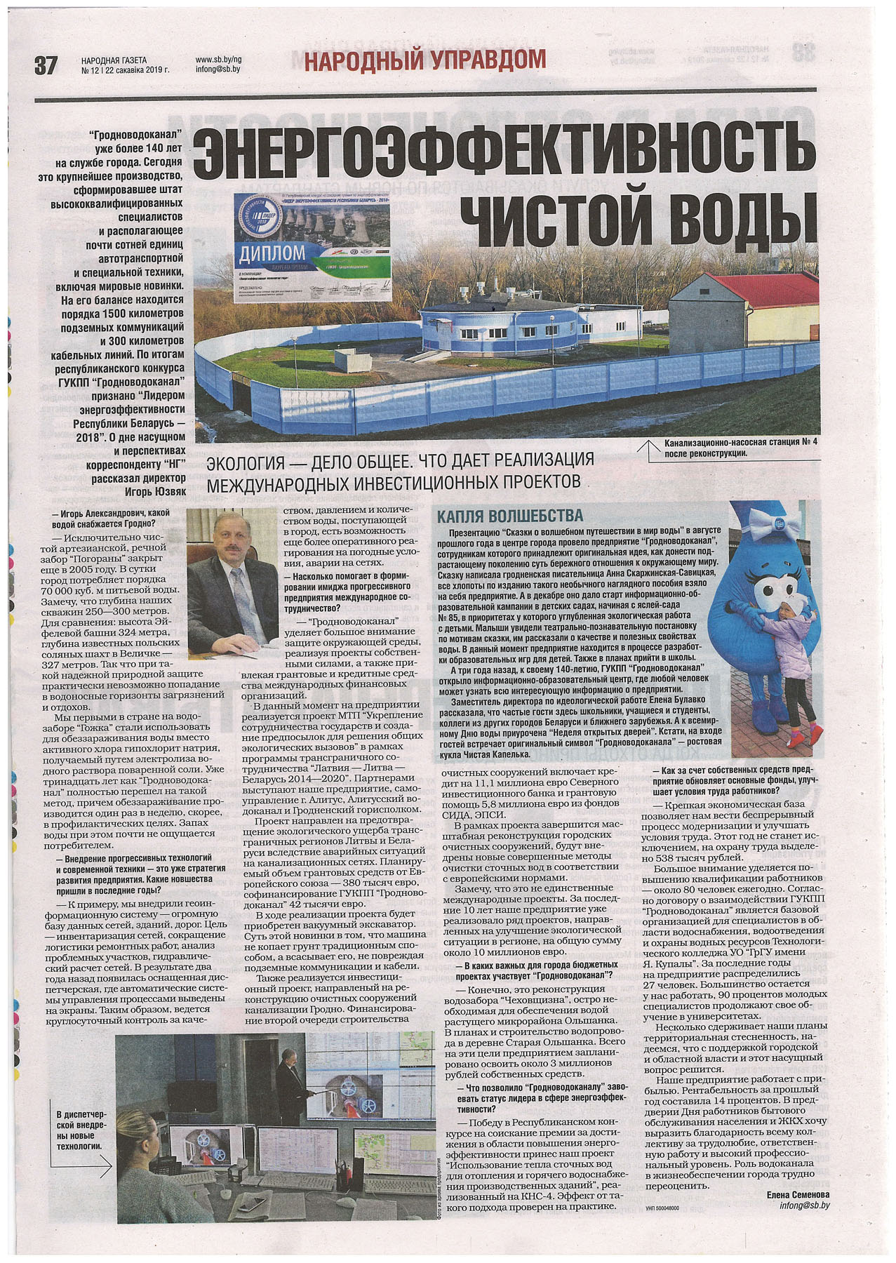 22.03.2019 г на страницах Народной газеты вышло интервью директора ГУКПП «Гродноводоканал».