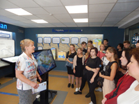 Заместитель директора по идеологической работе Елена Булавко рассказала, что частые гости здесь школьники, учащиеся и студенты, коллеги с других городов Беларуси и ближнего зарубежья. А к всемирному Дню воды приурочена «Неделя открытых дверей». Кстати, на входе гостей встречает оригинальный символ «Гродноводоканала» -- ростовая кукла Чистая Капелька.