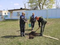 Так же проводились и работы по озеленению объектов - высажены саженцы деревьев, кустарников возле структурных подразделений предприятия.