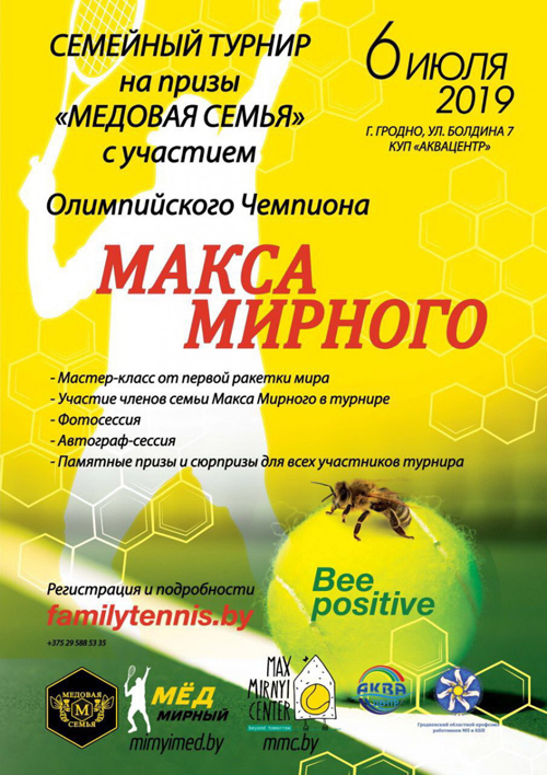 Гродненский областной комитет профсоюза работников местной промышленности и коммунально-бытовых предприятий приглашает всех желающих членов профсоюза принять участие 5-6 июля 2019 года в семейном турнире по теннису с участием олимпийского чемпиона Максима Мирного.