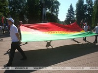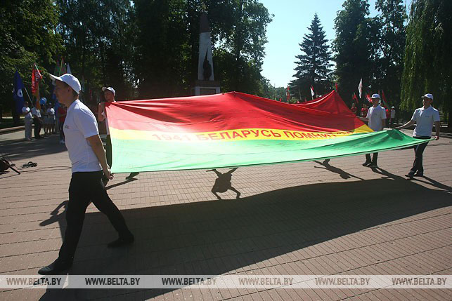 Во время шествия мы собираем фотографии защитников, информацию о них для создания республиканского полотнища "Беларусь помнит", которое 3 июля будет пронесено по проспекту Независимости и передано в музей Великой Отечественной войны", - отметила секретарь Центрального комитета БРСМ Александра Гончарова.