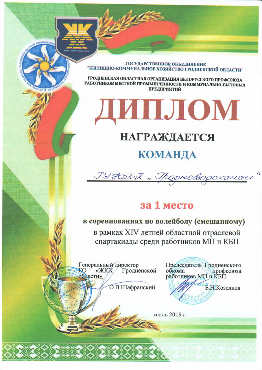 Коллектив ГУКПП «Гродноводоканал» традиционно принял участие в соревнованиях, показав стабильно высокие результаты в каждом из этапов. А в соревнованиях по волейболу и мини-футболу слаженная работа команды принесла 1 и 2 место соответственно.