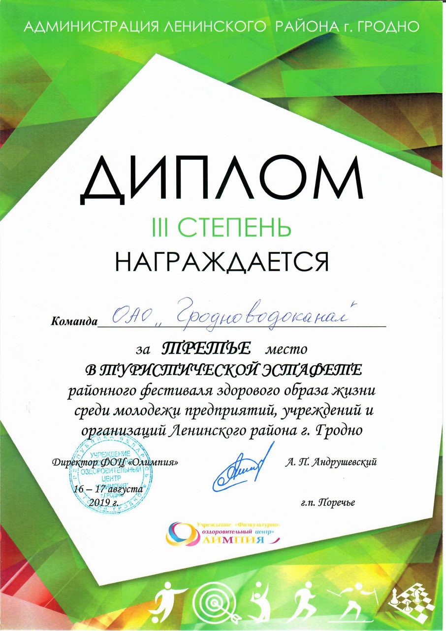 16-17 августа 2019 г. в д. Поречье, турбаза «Высокий берег" прошел 15-ый фестиваль здорового образа жизни среди молодёжи, посвященный 75-летию образования Гродненской области, в котором приняла участие и команда ГУКПП «Гродноводоканал».