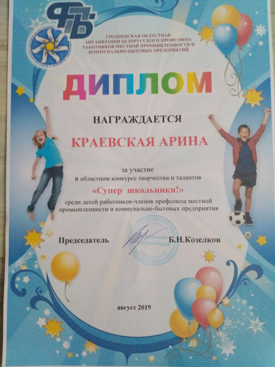 От ГУКПП «Гродноводоканал» в конкурсе приняла участие Краевская Арина – дочь работницы предприятия Краевской К.Р.