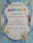 Девочка отлично справилась с дефиле, а также покорила жюри своим номером – игрой на саксофоне! Диплом участника конкурса в копилку наград!