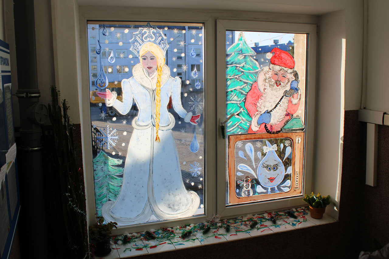 C 13 по 24 декабря среди структурных подразделений ГУКПП «Гродноводоканал» прошел конкурс на лучшее новогоднее украшение окон. По условиям конкурса особое внимание уделялось творческой защите украшения, и сотрудники предприятия с большой фантазией подошли к требованию – песни, частушки, театрализованные представления, стихи собственного сочинения, песни и даже парный танец! Конкурсной комиссии от профсоюзного комитета и администрации сделать выбор было нелегко!