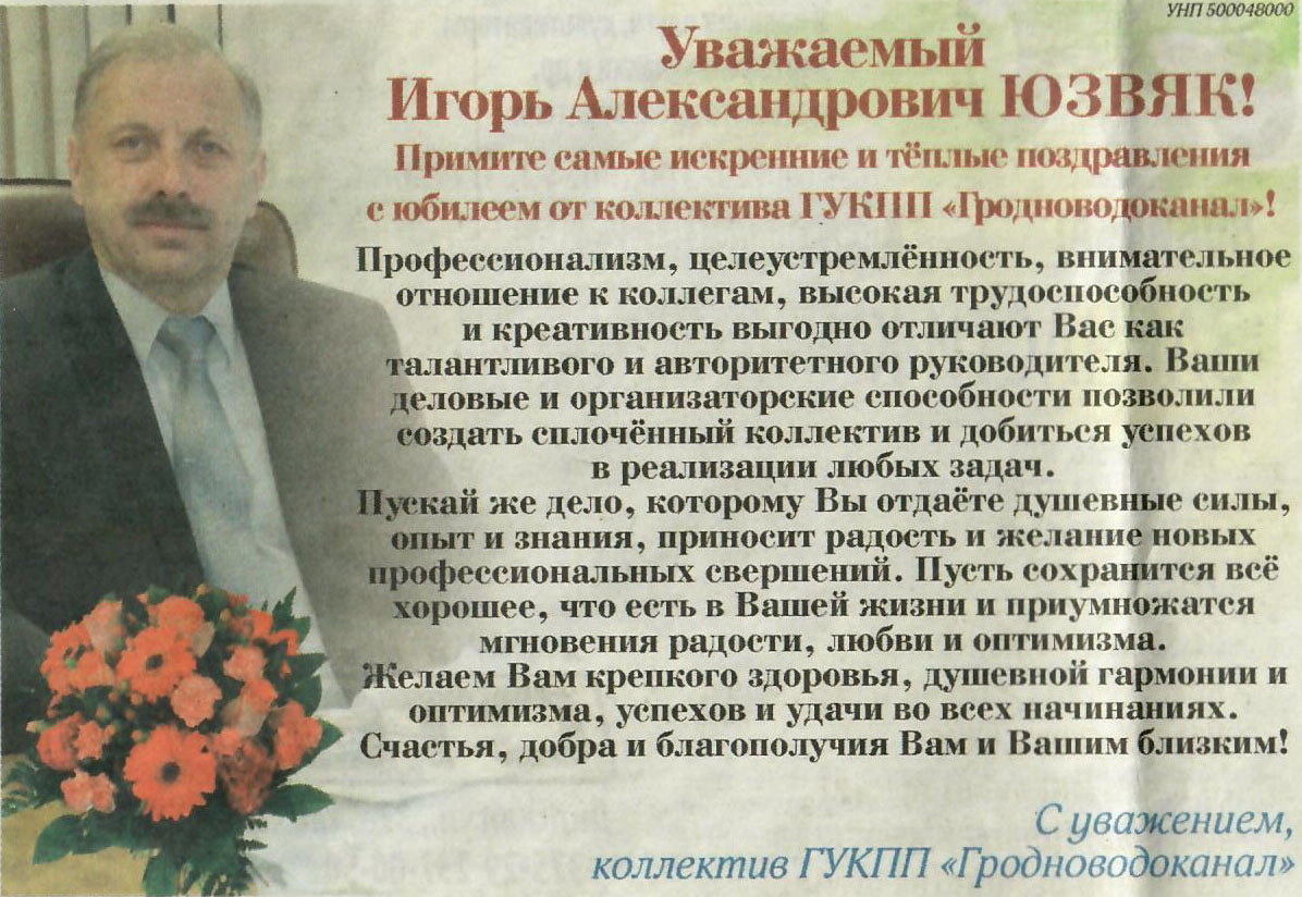 Коллектив ГУКПП «Гродноводоканал» также тепло и радостно поздравил Игоря Александровича с юбилеем.