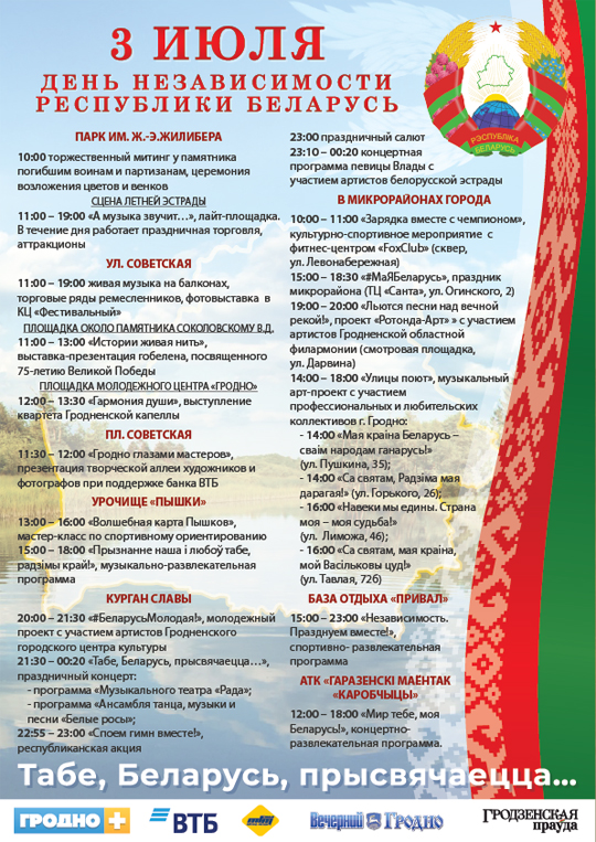 Торжественные мероприятия по случаю Дня Независимости Республики Беларусь пройдут на Гродненщине 3 июля. Программа: