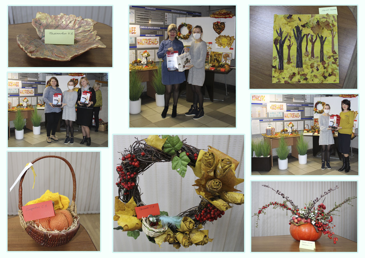 Профсоюзный комитет в октябре 2020 г. объявил о проведении конкурса на лучшую осеннюю поделку среди работников предприятия «Осеннее настроение». 05.11.2020 г. были подведены итоги конкурса. Всего приняло участие 27 человек. Определены три призовых места: