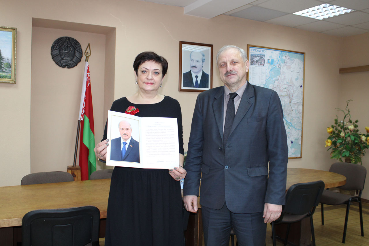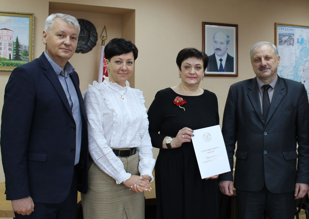 31.12.2020г. в торжественной обстановке обходчику водопроводных сетей ГУКПП «Гродноводоканал», председателю ветеранской организации предприятия Литвин Валентине Валентиновне за активную гражданскую позицию было вручено Благодарственное письмо Президента Республики Беларусь.