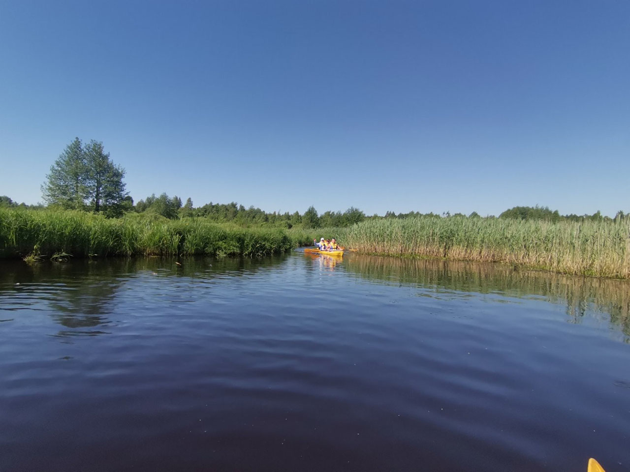 Мы начали свой маршрут от моста в Берштах. На левом берегу есть удобная площадка для посадки в байдарки. Котра петляет по заболоченной пойме, справа тянется деревня, слева луговой, местами заболоченный берег. Мы были очарованы и немного введены в заблуждение. Ожидали увидеть прекрасный сосновый лес, ощутить смоляной дух, увидеть живописные долины, но увы! Тем не менее плавание было приятным и мы с нетерпение ждали, когда после очередного поворота мы вплотную приблизимся к сосновому лесу, но каждый раз лес оказывался отделенным от берега десятками метрами болота или заболоченного луга. Мы снова и снова уходили в камыши. Чувство было, что плывем по заросшей реке Амазонии. Скрасило наше настроение прекрасно цветущие водные лилии и кувшинки, и чувство неизвестности, что там впереди за поворотом? Котра существенно не меняется, река продолжает петлять по заболоченной пойме среди зарослей камышей периодически образуя разливы, как маленькие озера. Конечным пунктом нашего сплава была деревня Сухари.