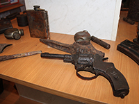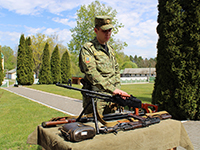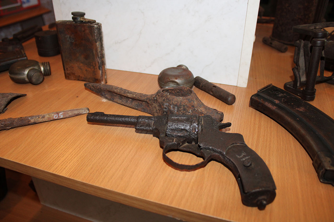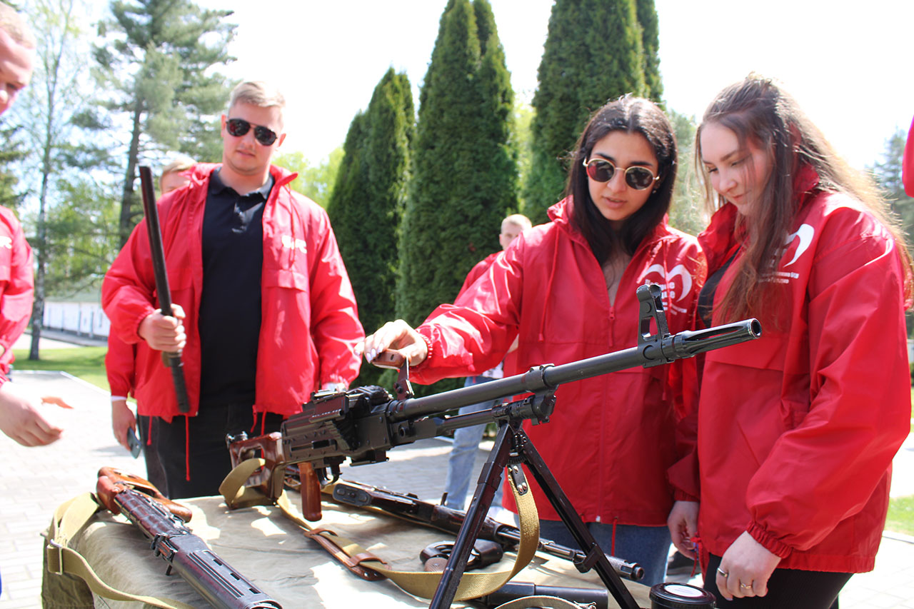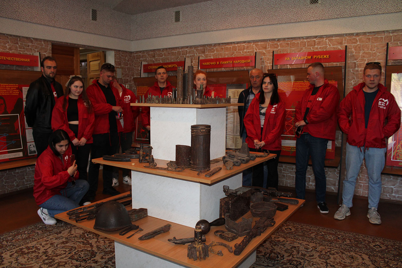 Ребятам была проведена экскурсия по музею, в котором представлено более 500 военных раритетов, коллекция которых продолжает пополняться. Все экспонаты аутентичны. Экспозиция собрана по крупицам июньских событий 1941 года: гранаты, пули, заржавевшие винтовки и пулеметы. Но самый главный экспонат – это револьвер командира заставы лейтенанта Усова.