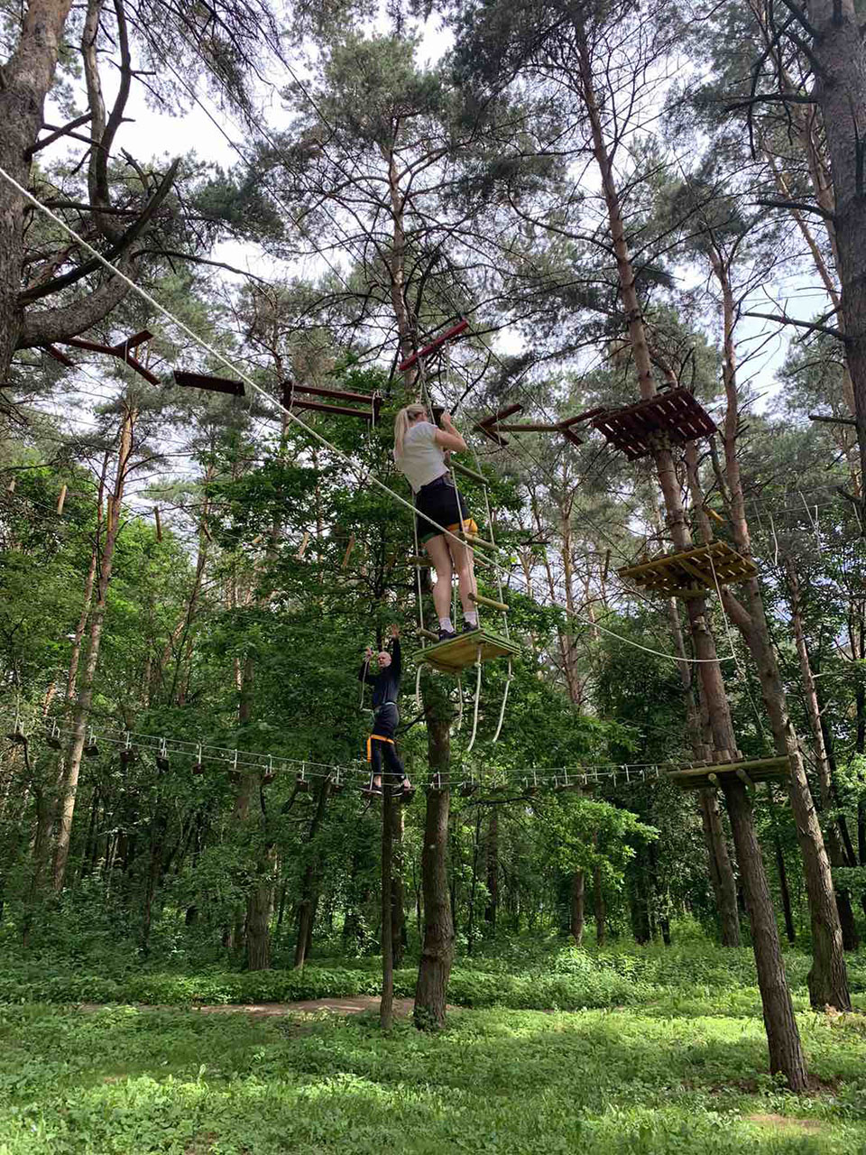 Веревочный парк представляет собой комплекс препятствий, этапов, размещенных между деревьев на определенной высоте. Практически для каждого это было первое посещение веревочного парка. Это уникальная возможность проверить свои силы, ловкость и умение держаться в команде. Это такой вызов самому себе! Это не весёлое «сладкое» развлечение – это страшно, это ссадины, горящие ладони, и одновременно это зашкаливающий драйв, пылающие щеки и горящие глаза!