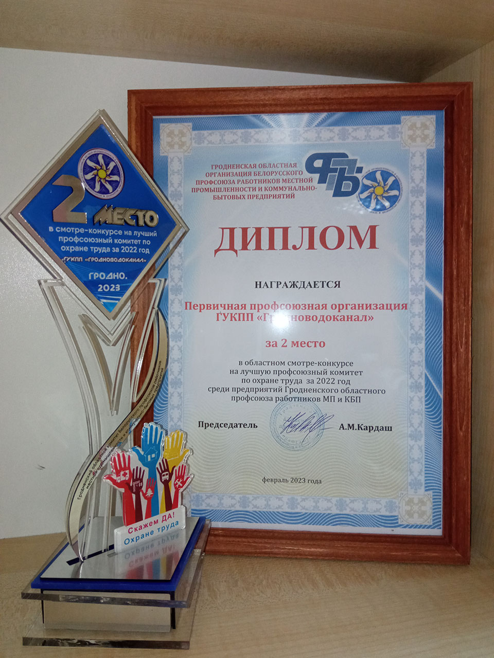В конкурсе на лучший профсоюзный комитет по охране труда за 2022 год первичная профсоюзная организация ГУКПП «Гродноводоканал» заняла 2 –е место!