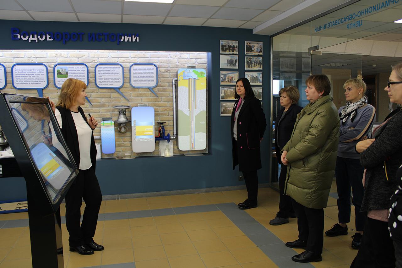 Ольга Далькевич познакомила коллег с историей предприятия и технологиями очистки питьевой и сточной воды. Наше предприятие является четырежды победителем республиканского конкурса «Лидер энергоэффективности», поэтому гостям было интересно ознакомиться с передовым опытом в области энергосбережения и с идеями и методами энергосбережения на предприятии. Евгений Подалевич профессионально показал в действии систему ГИС в диспетчерской, а Елена Зеневич рассказала об установке и поверке водомеров, показала разные модели с возможностью дистанционного съема показаний. Получился конструктивный диалог и обмен мнениями.