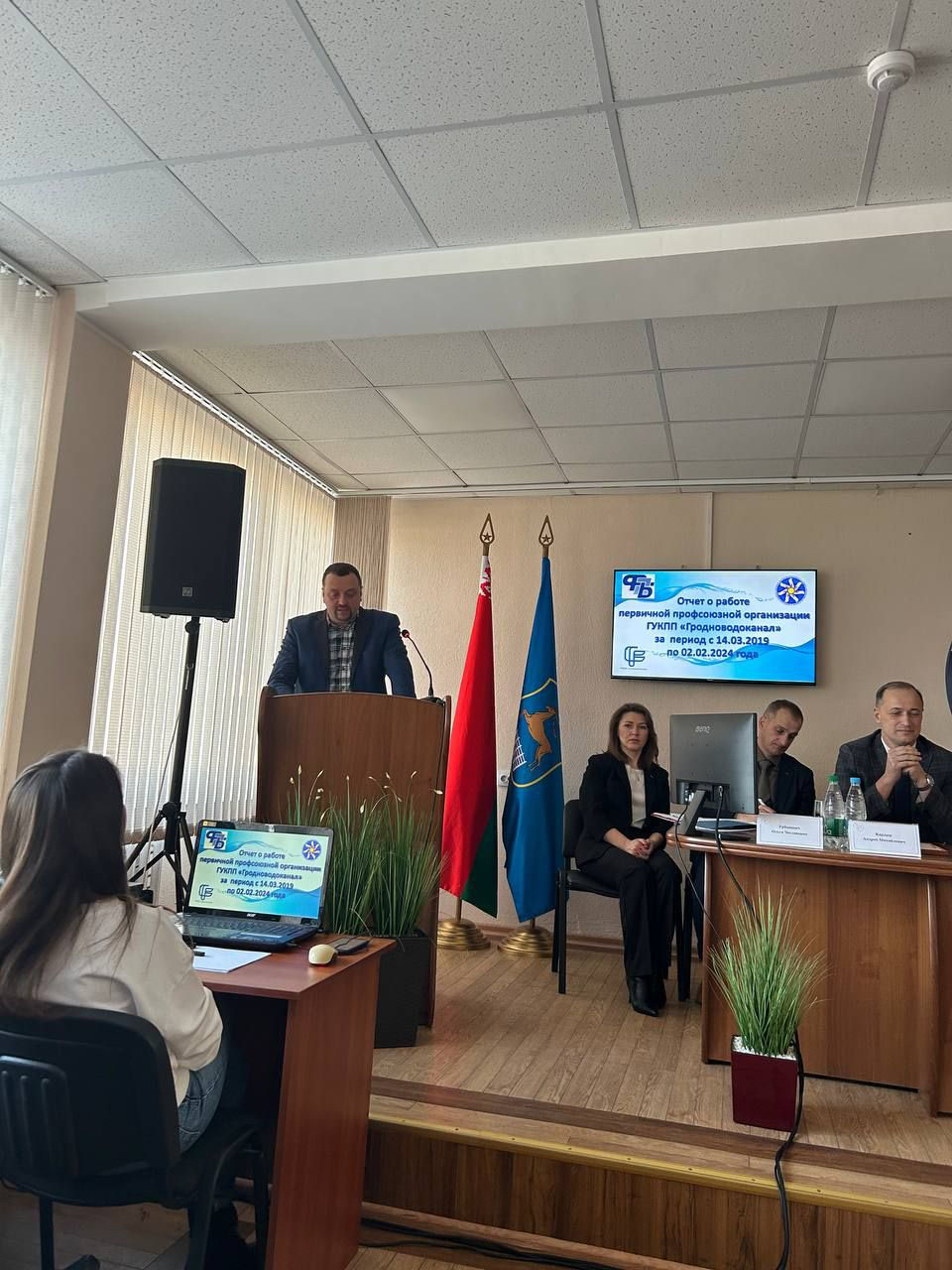 2 февраля 2024 года в первичной профсоюзной организации ГУКПП «Гродноводоканал» прошла отчетно-выборная конференция. В работе конференции приняли участие инспектор управления по связям с членскими организациями и организационными структурами ФПБ главного управления организационной и кадровой работы аппарата Совета ФПБ Нина Журенкова, председатель Гродненской областной организации профсоюза Андрей Кардаш и председатель Гродненского городского районного объединения профсоюзов Андрей Ярошевич.