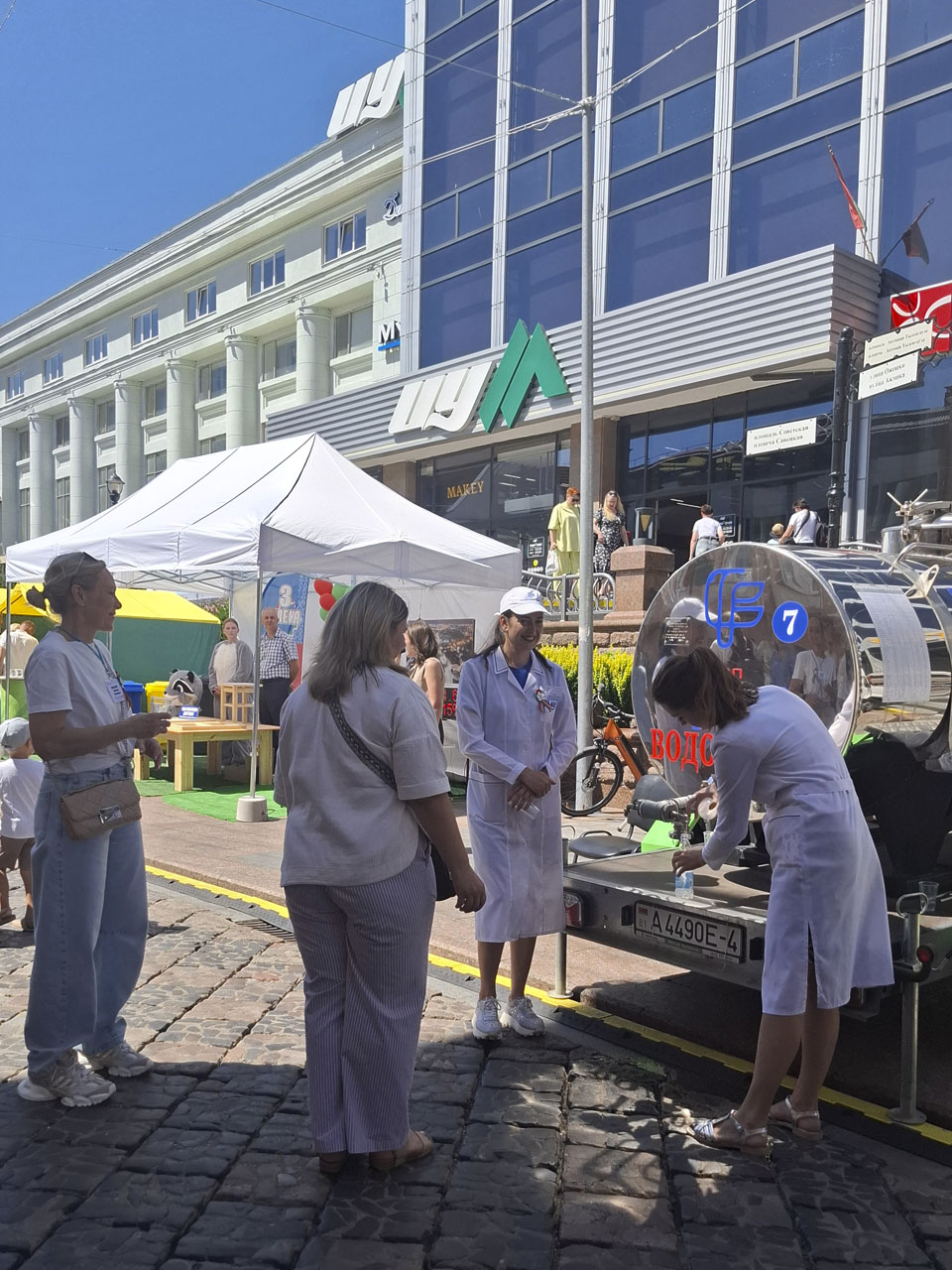 Бочки с питьевой водой, установленные в местах массового скопления людей, позволили утолить жажду гродненцев.