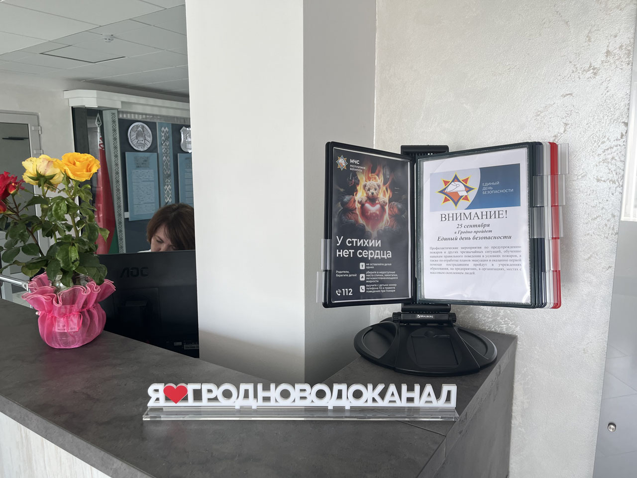 10 сентября работники ГУКПП «Гродноводоканал» приняли участие в мероприятиях, приуроченных к Единому дню безопасности, который пройдет в республике 25 сентября. Основная цель акции – максимальное снижение гибели людей от внешних причин. Поэтому мероприятия, проводимые на объектах предприятия, были направлены на формирование среди работников, а также посетителей Гродноводоканала, культуры безопасности жизнедеятельности, обучение правилам поведения в условиях пожара, а также отработку планов эвакуации при пожаре.