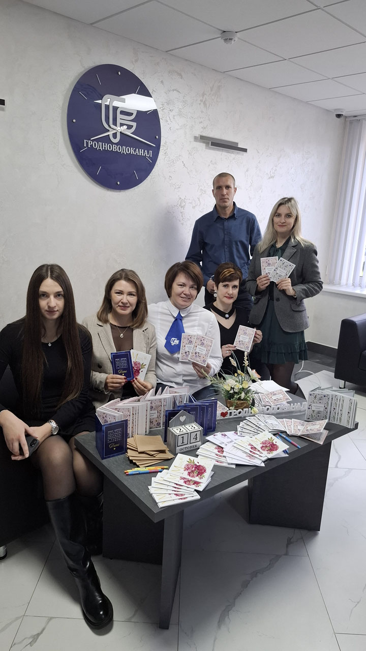 С 9 октября в первичной профсоюзной организации «Гродноводоканал» стартовала республиканская профсоюзная акция «Поздравим маму вместе!», «Поздравим папу вместе!». С каждым годом растет вовлеченность сотрудников нашего предприятия в данную акцию. Каждый имеет возможность отправить красивую поздравительную открытку родителям. Для того, чтобы это сделать не нужно посещать почту – тематически оформленный уголок располагается в фойе предприятия на первом этаже.